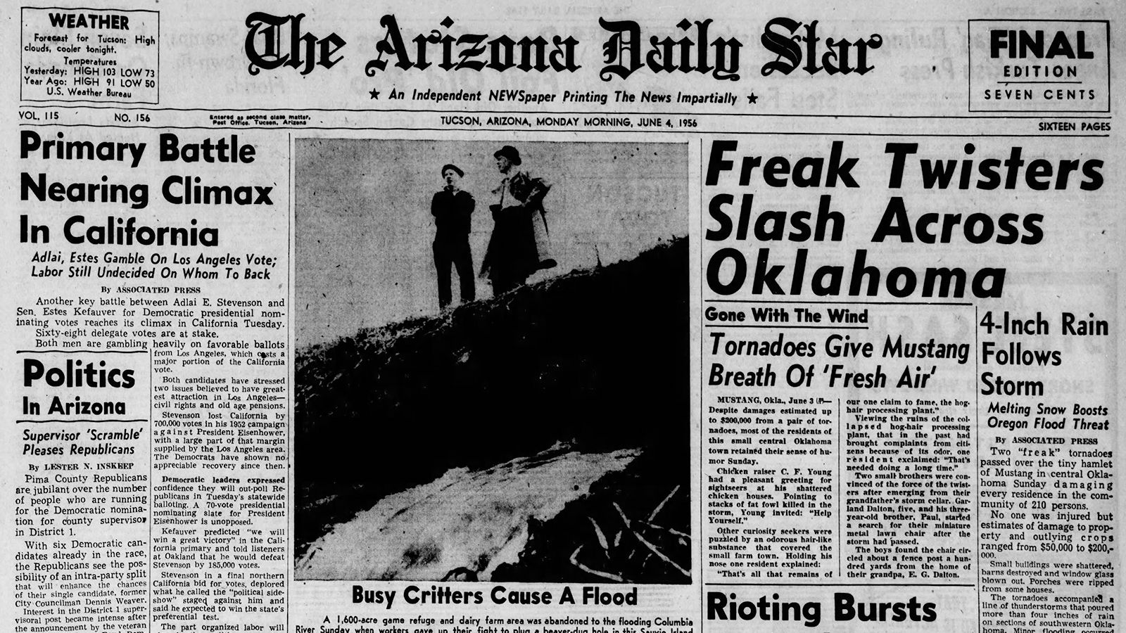 We've collected a few front pages from newspapers.com to give you a look at some June 4 papers in history. With a subscription to newspapers.com you can search the Arizona Daily Star and many other newspapers using keywords or dates, and download articles or pages.