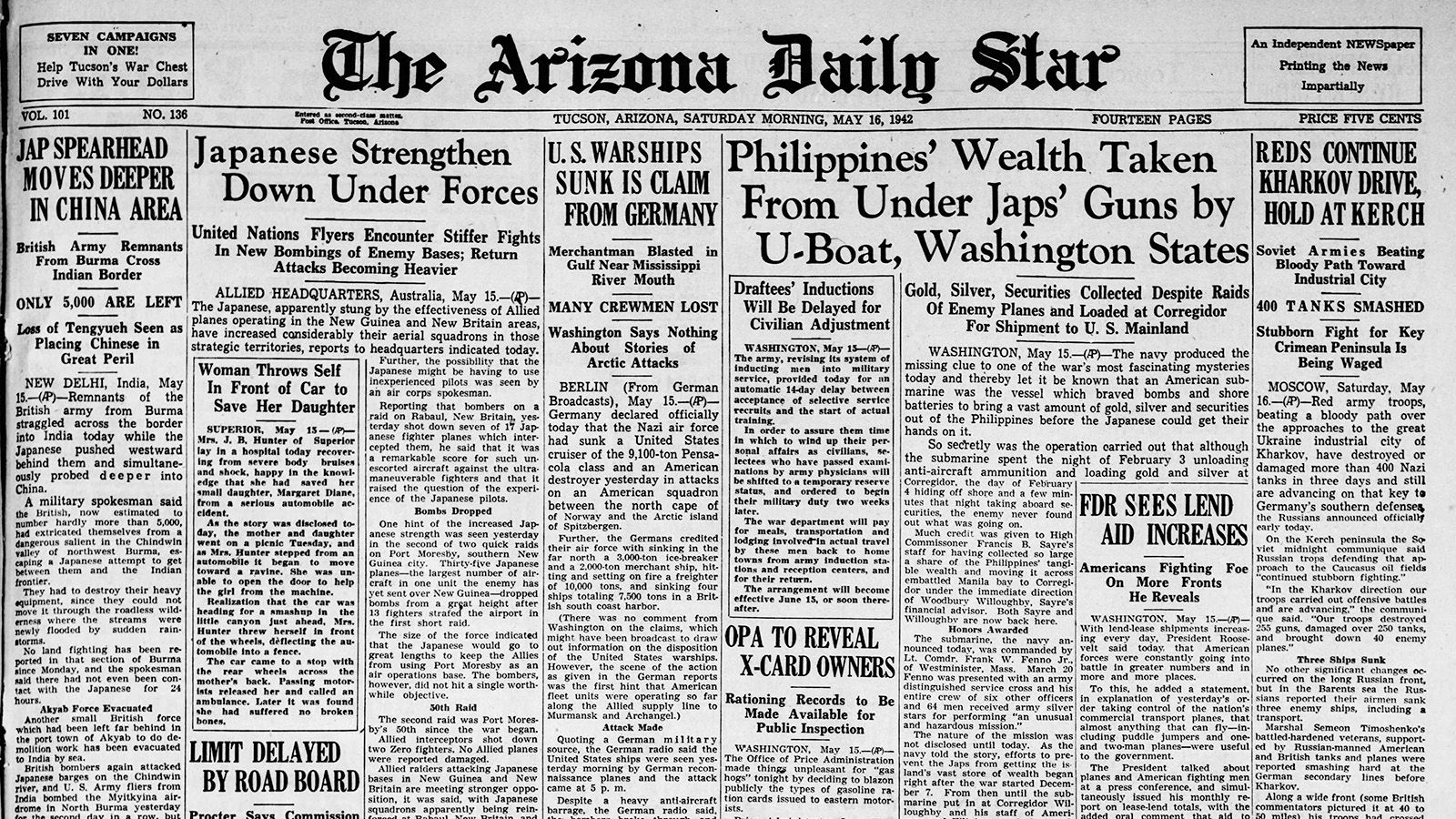 We've collected a few front pages from newspapers.com to give you a look at some May 16 papers in history. With a subscription to newspapers.com you can search the Arizona Daily Star and many other newspapers using keywords or dates, and download articles or pages.
