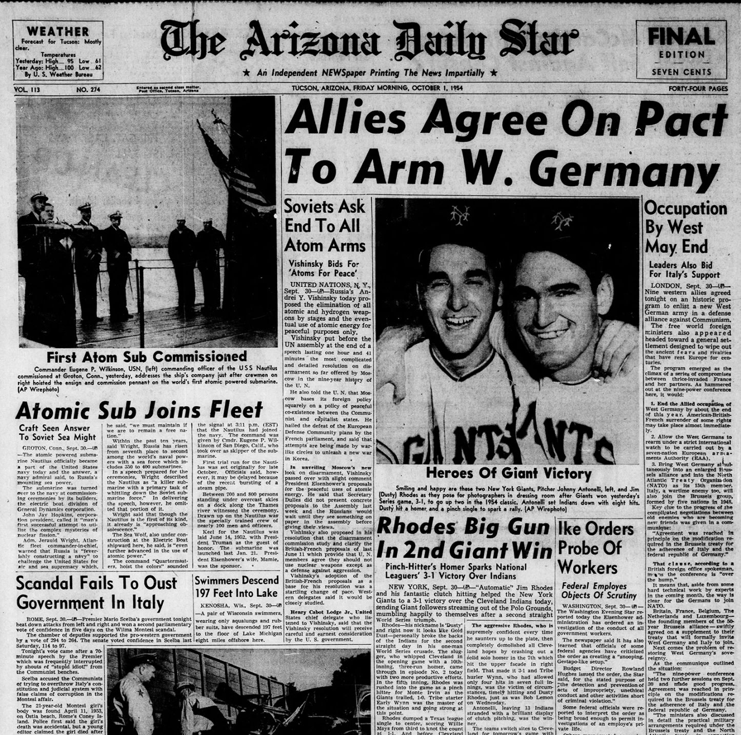 We've collected a few front pages from newspapers.com to give you a look at some Oct. 1 papers in history. With a subscription to newspapers.com you can search the Arizona Daily Star and many other newspapers using keywords or dates, and download articles or pages.