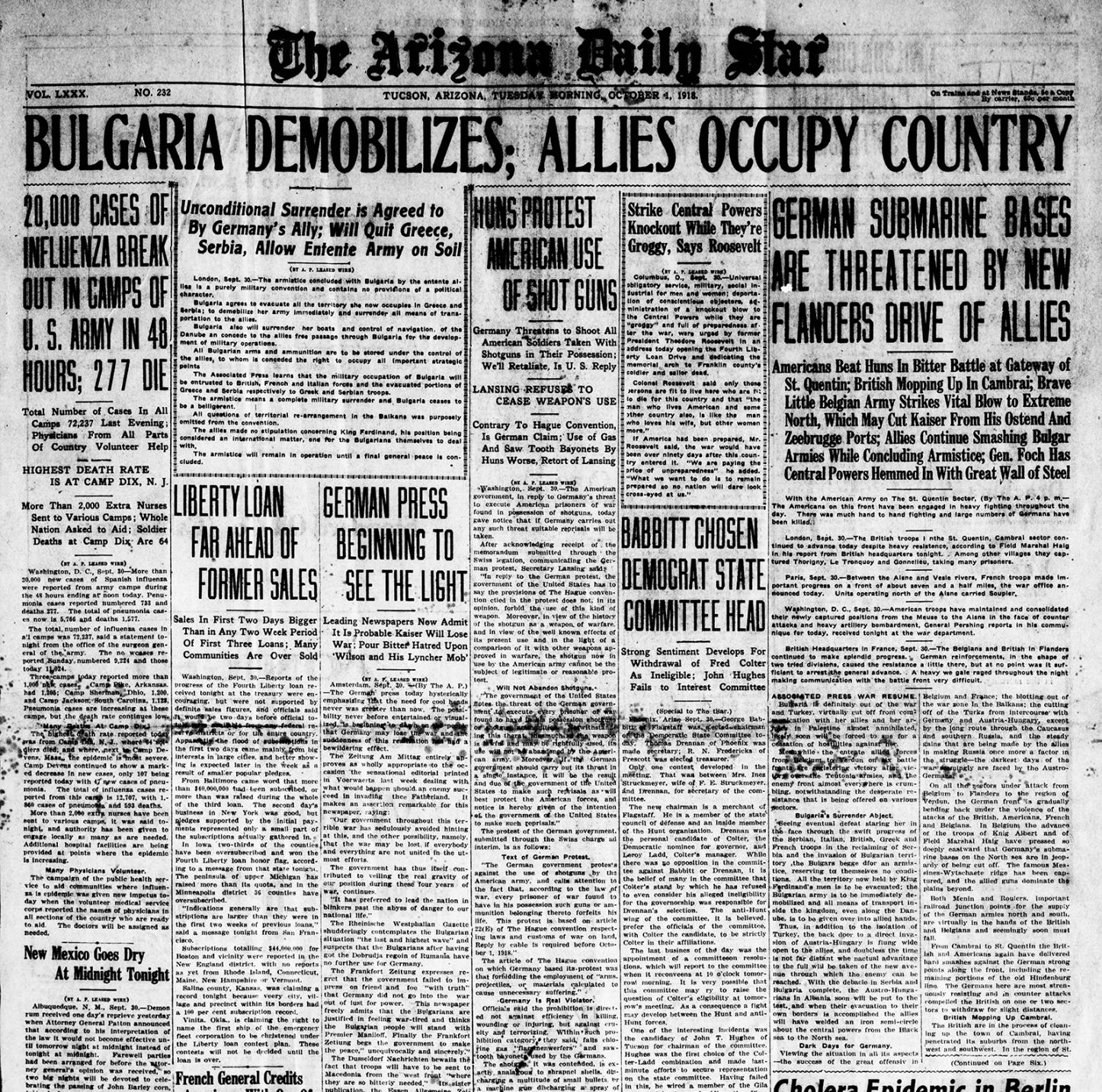 - Sept. 28 Arizona Daily Star front pages: Roosevelt wants peace with Germany
