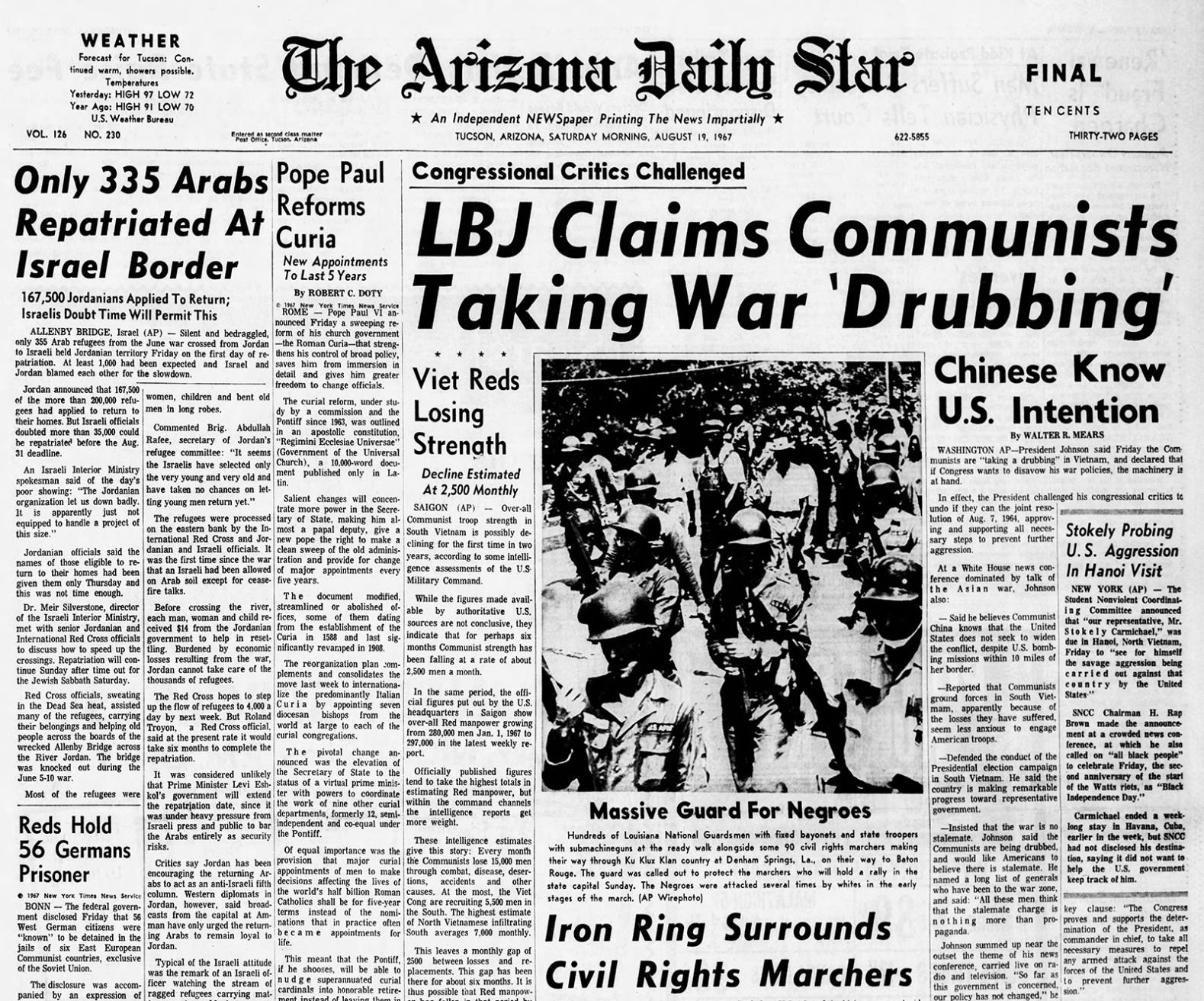 - Aug. 21 Arizona Daily Star front pages: Russians invade Czechoslovakia