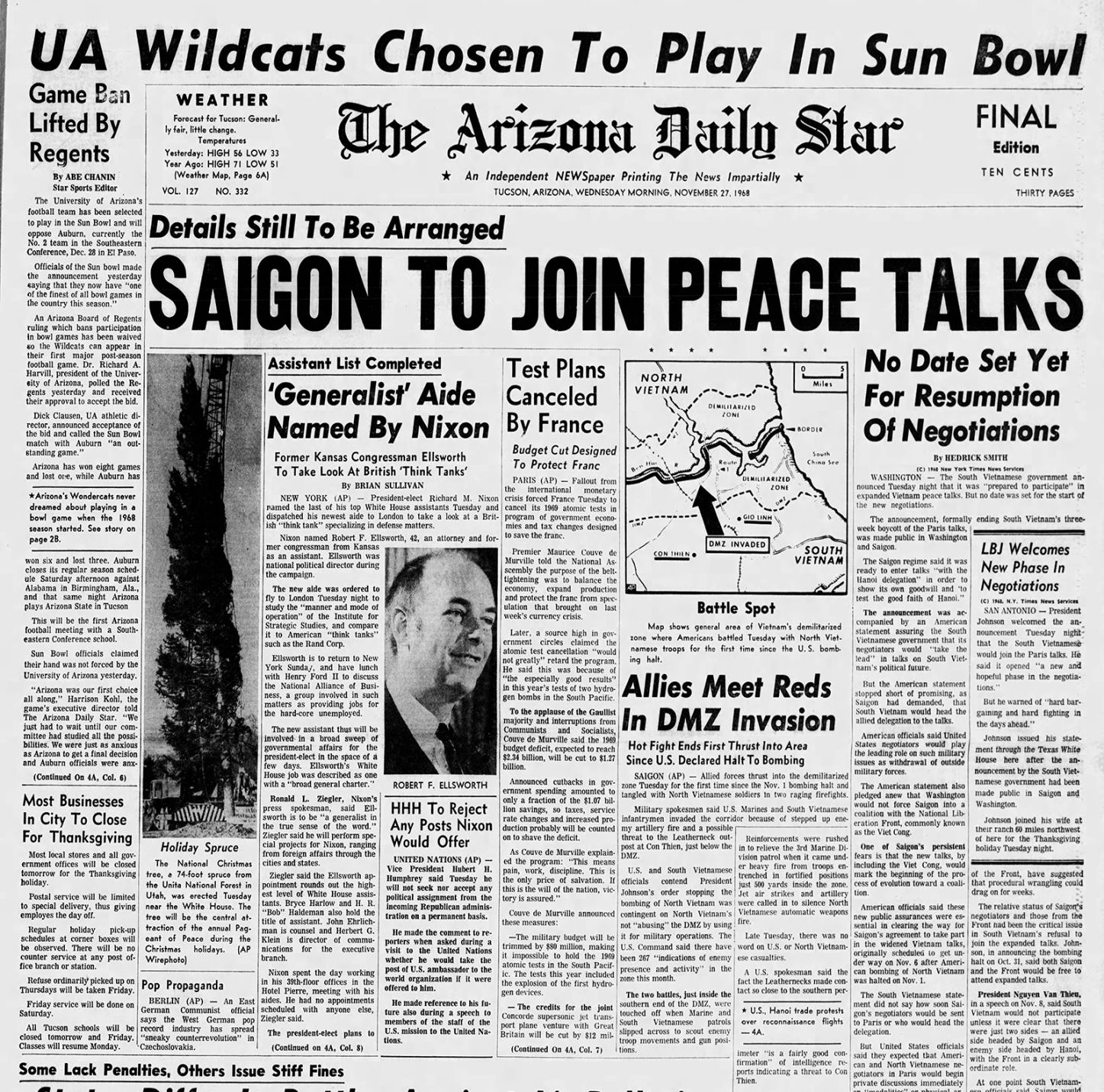 We've collected a few front pages from newspapers.com to give you a look at some Nov. 27 papers in history. With a subscription to newspapers.com you can search the Arizona Daily Star and many other newspapers using keywords or dates, and download articles or pages.