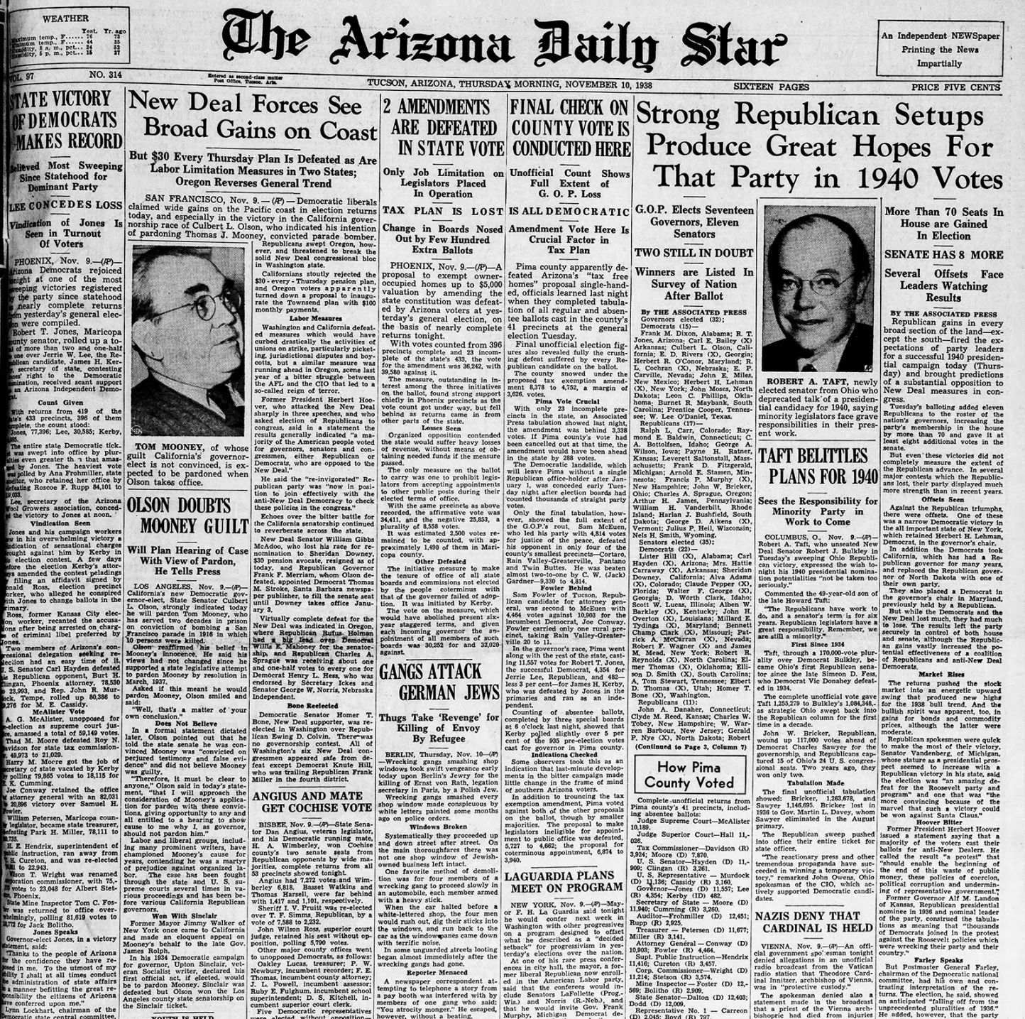 - Nov. 8 Arizona Daily Star front pages: Fourth term for FDR