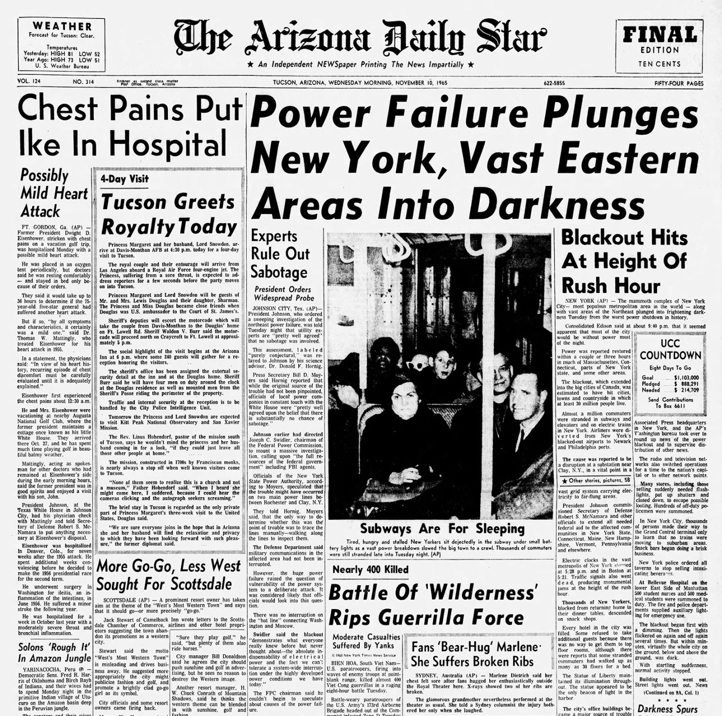 Nov. 10 Arizona Daily Star front pages: Blackout in the East