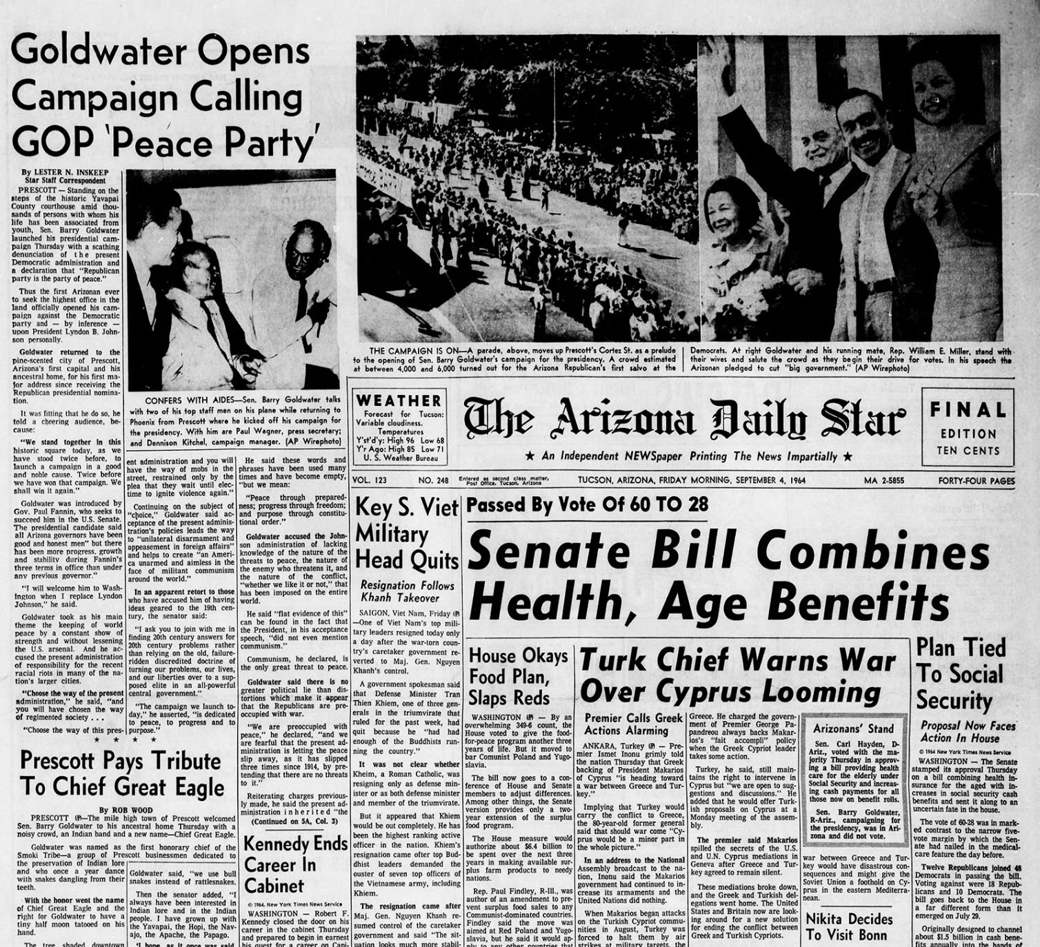 We've collected a few front pages from newspapers.com to give you a look at some Sept. 4 papers in history. With a subscription to newspapers.com you can search the Arizona Daily Star and many other newspapers using keywords or dates, and download articles or pages.