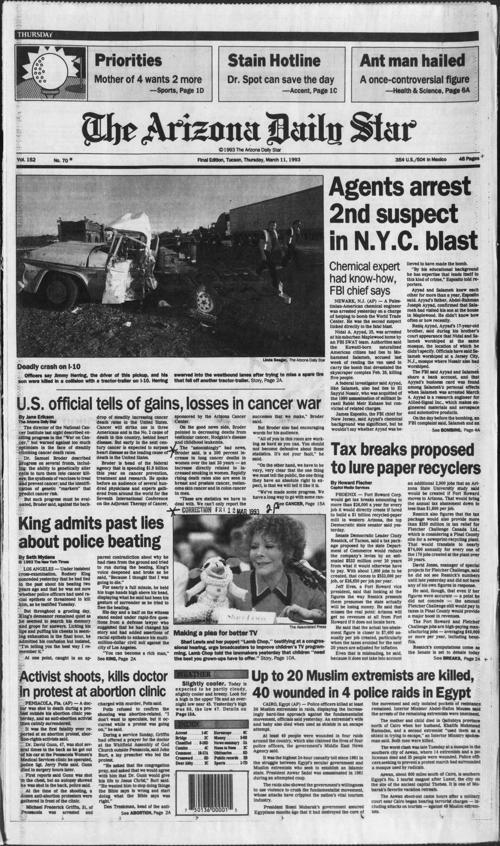 Historical March 11 Arizona Daily Star front pages