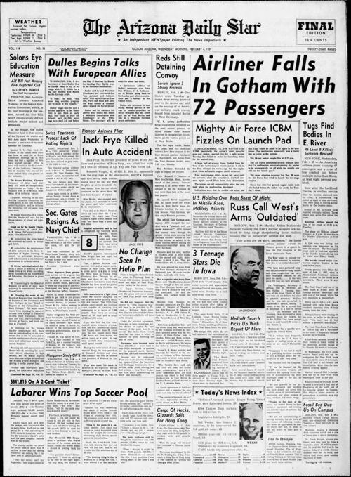 We've collected a few front pages from newspapers.com to give you a look at some Feb. 4 papers in history. With a subscription to newspapers.com you can search the Arizona Daily Star and many other newspapers using keywords or dates, and download articles or pages.