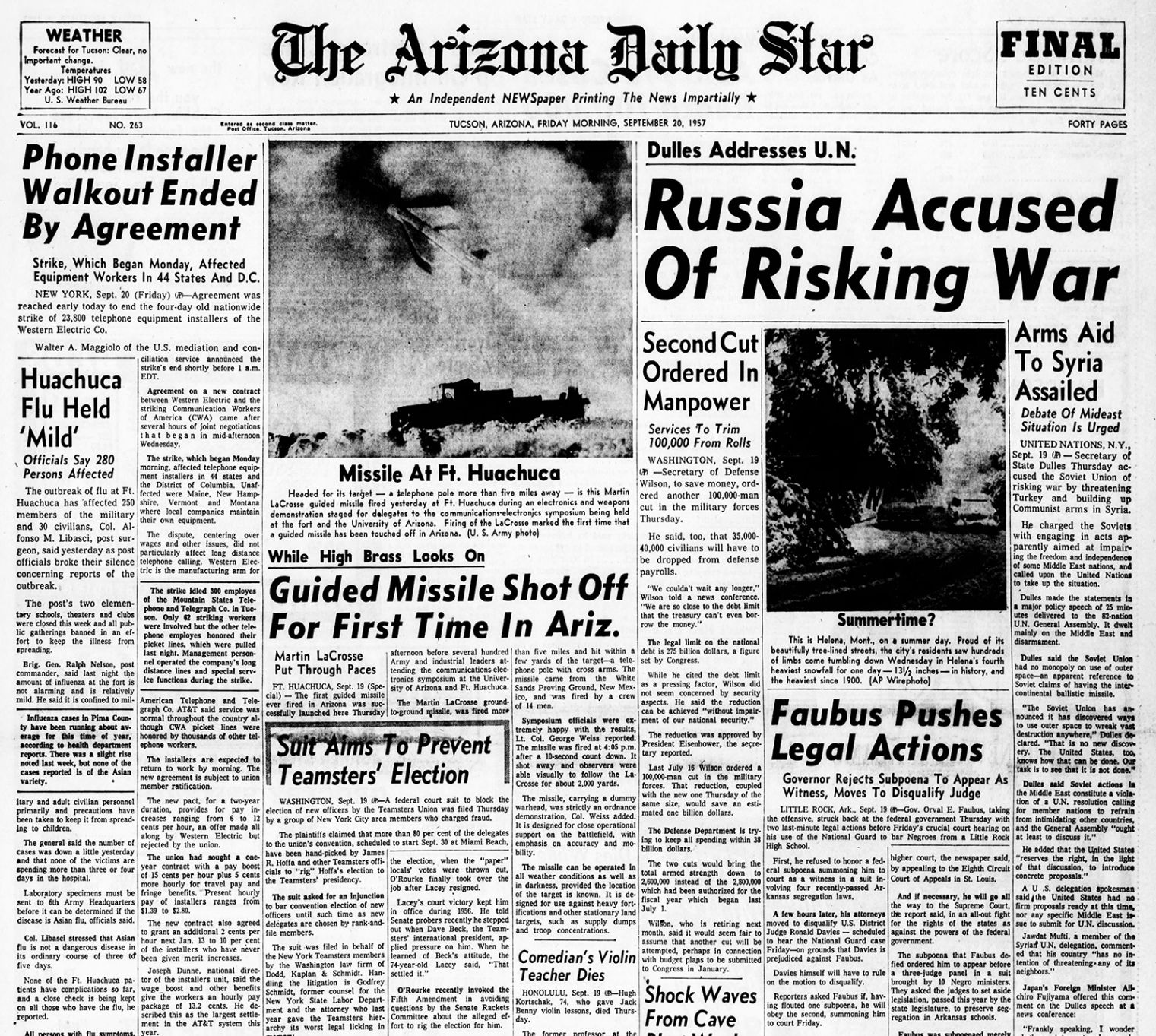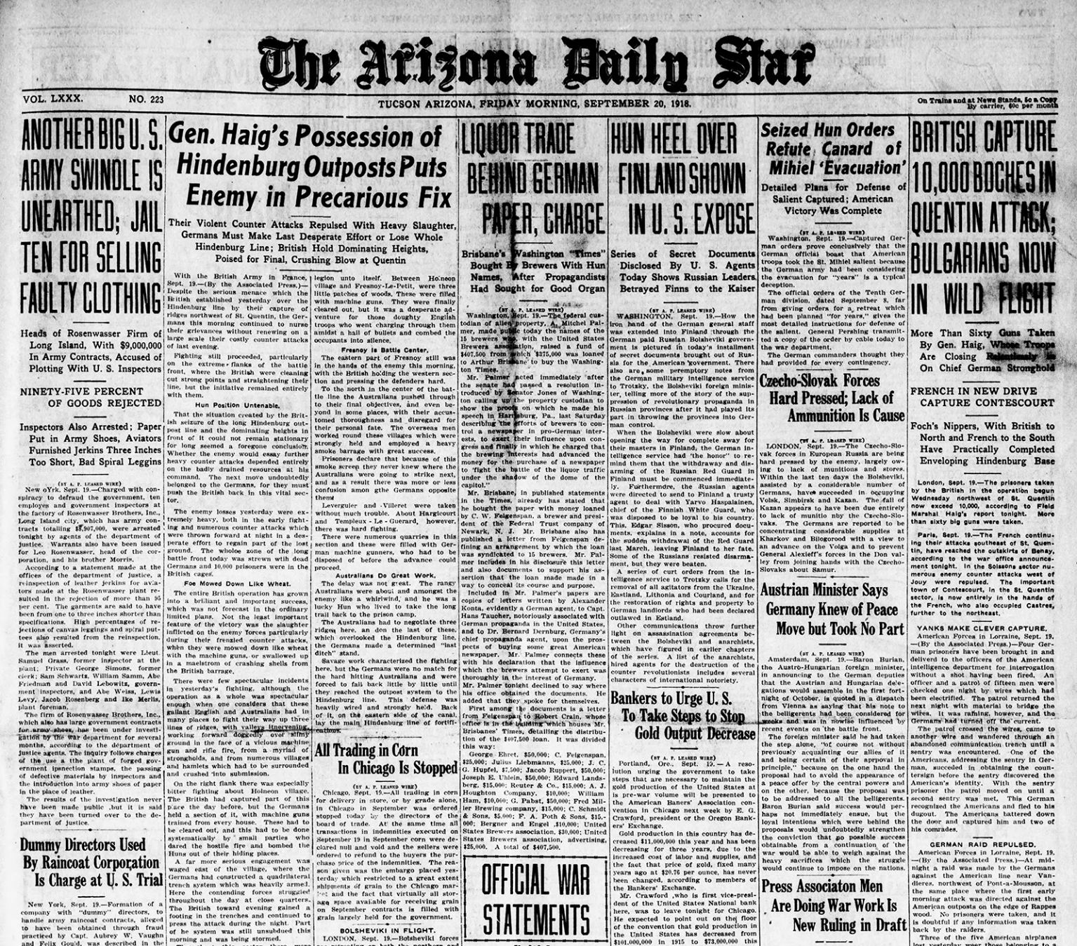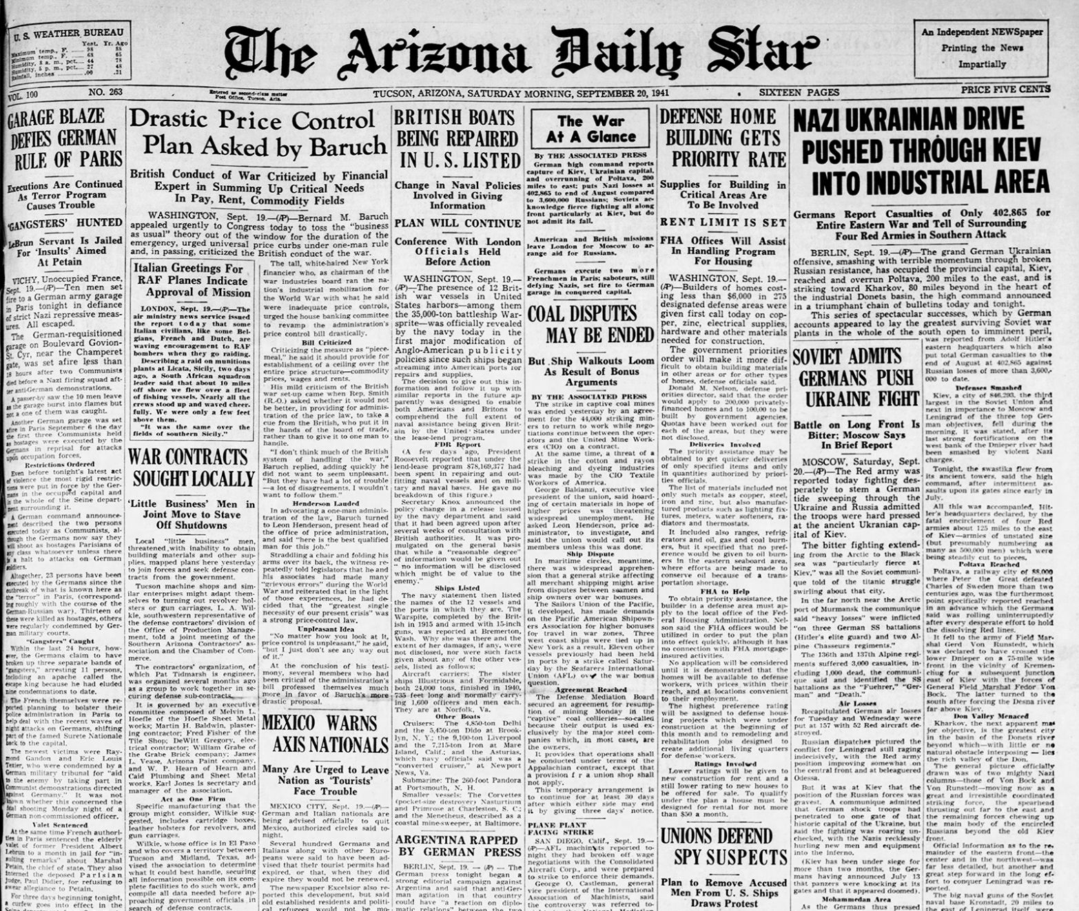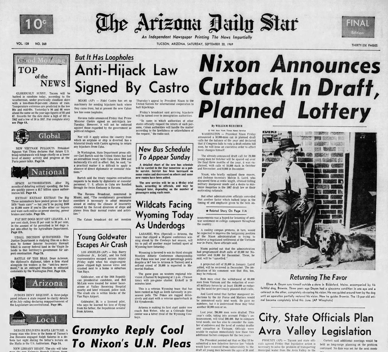 We've collected a few front pages from newspapers.com to give you a look at some Sept. 20 papers in history. With a subscription to newspapers.com you can search the Arizona Daily Star and many other newspapers using keywords or dates, and download articles or pages.