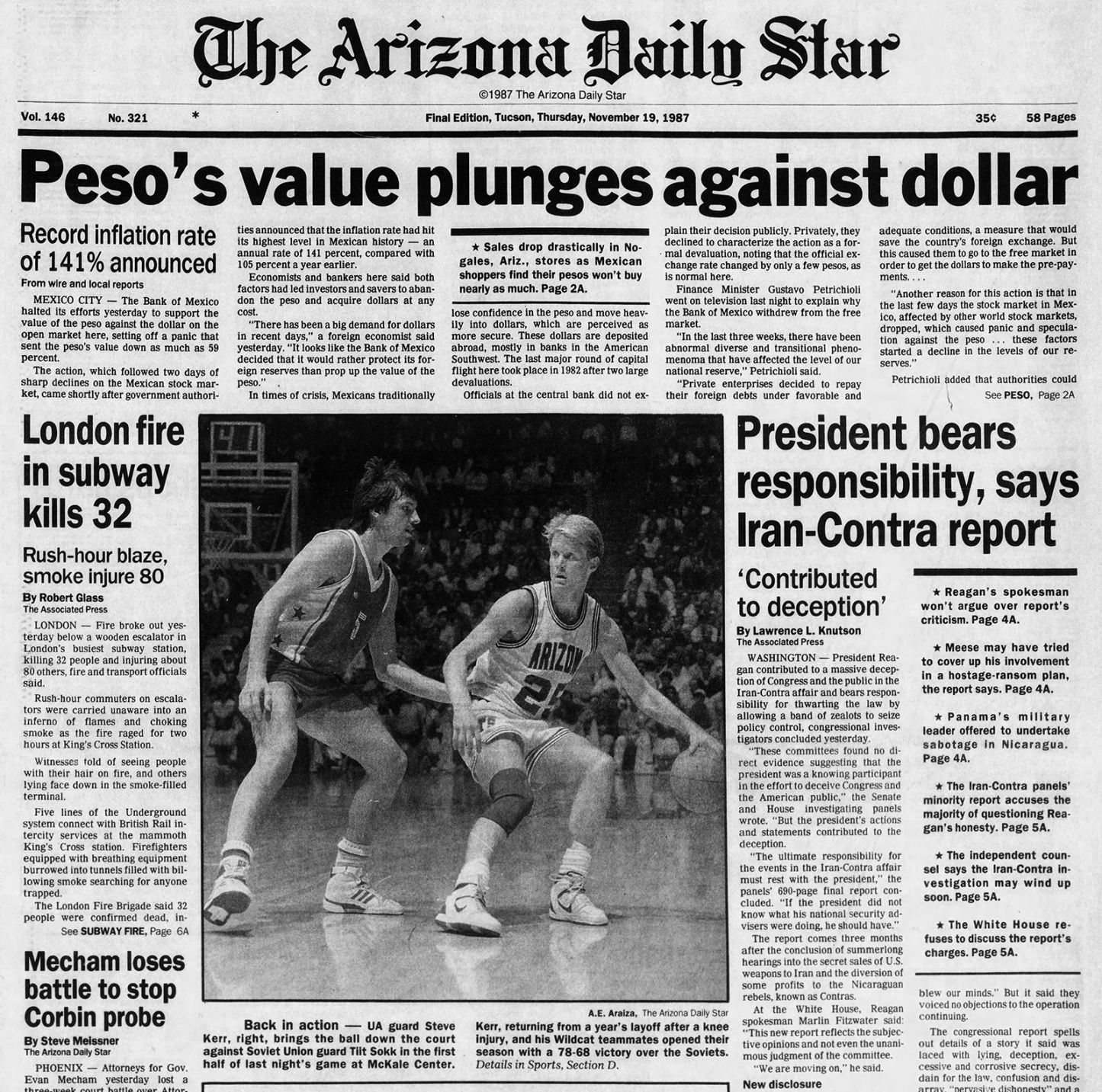 - Nov. 18 Arizona Daily Star front pages: Nixon says 'I'm not a crook'
