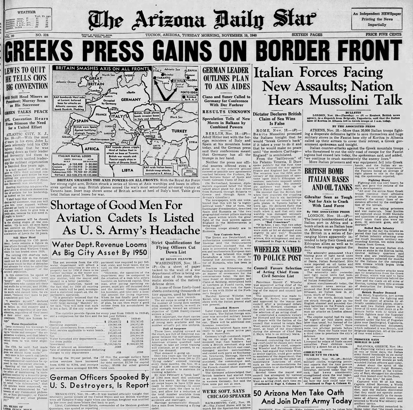 We've collected a few front pages from newspapers.com to give you a look at some Nov. 19 papers in history. With a subscription to newspapers.com you can search the Arizona Daily Star and many other newspapers using keywords or dates, and download articles or pages.