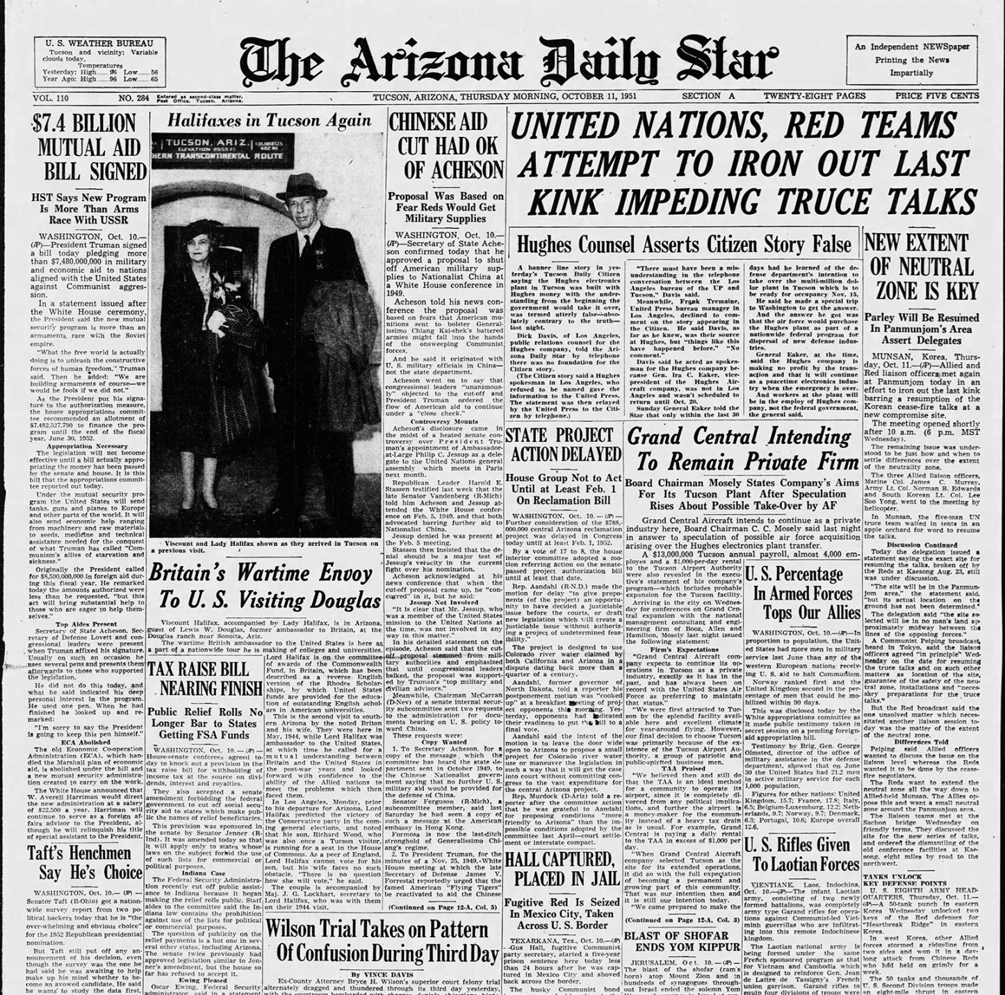 We've collected a few front pages from newspapers.com to give you a look at some Oct. 11 papers in history. With a subscription to newspapers.com you can search the Arizona Daily Star and many other newspapers using keywords or dates, and download articles or pages.