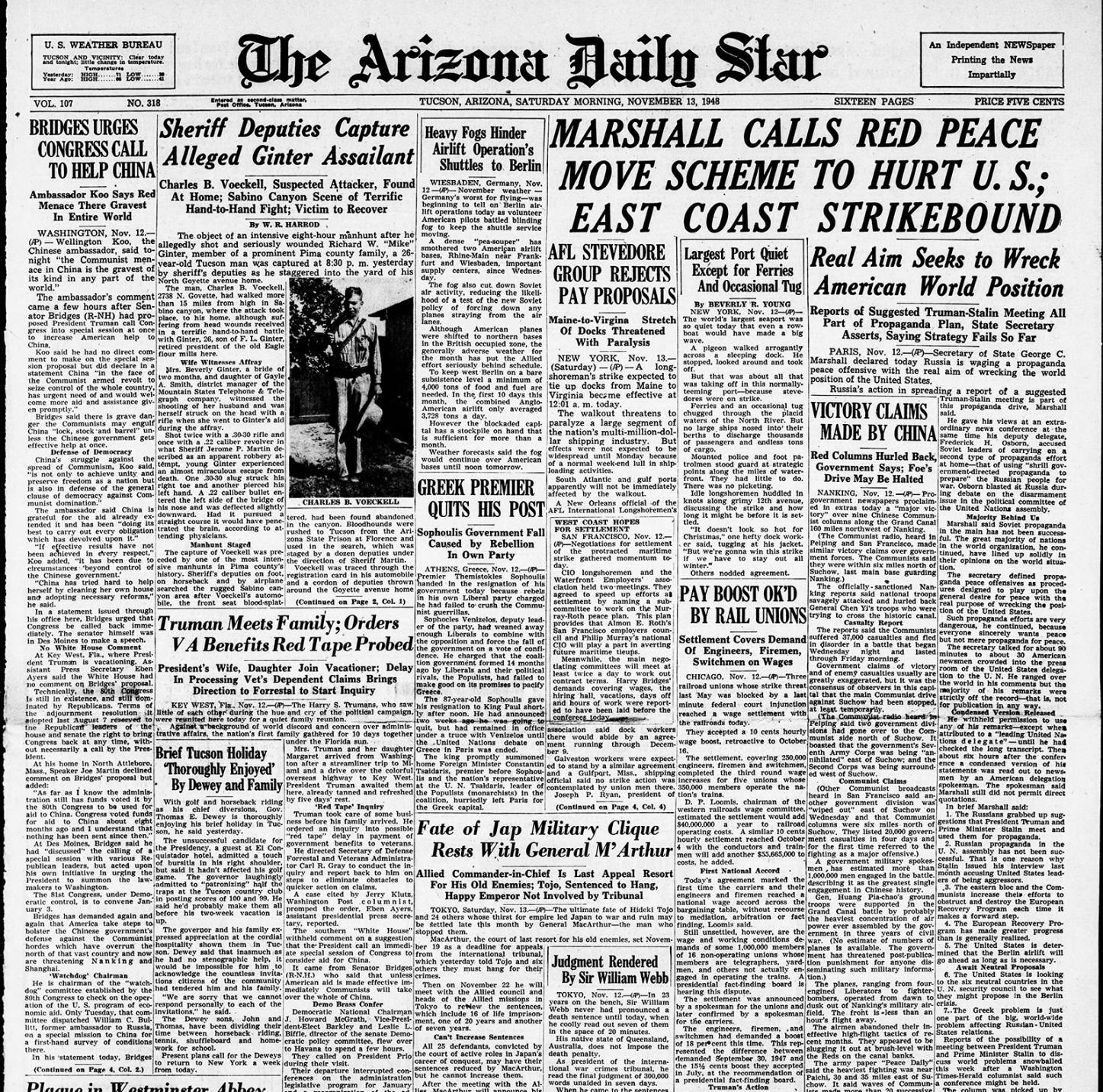 - Nov. 12 Arizona Daily Star front pages: Unknown Soldier buried