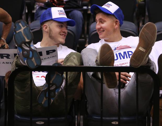 Mike Christy / Arizona Daily Star: Jiovonni Ortega, 17, left, and Tyler Carlson, 15, both of Sierra Vista, await the start of Republican presidential candidate Donald Trump's rally at the Tucson Convention Center on Saturday. Photo taken Saturday,. |