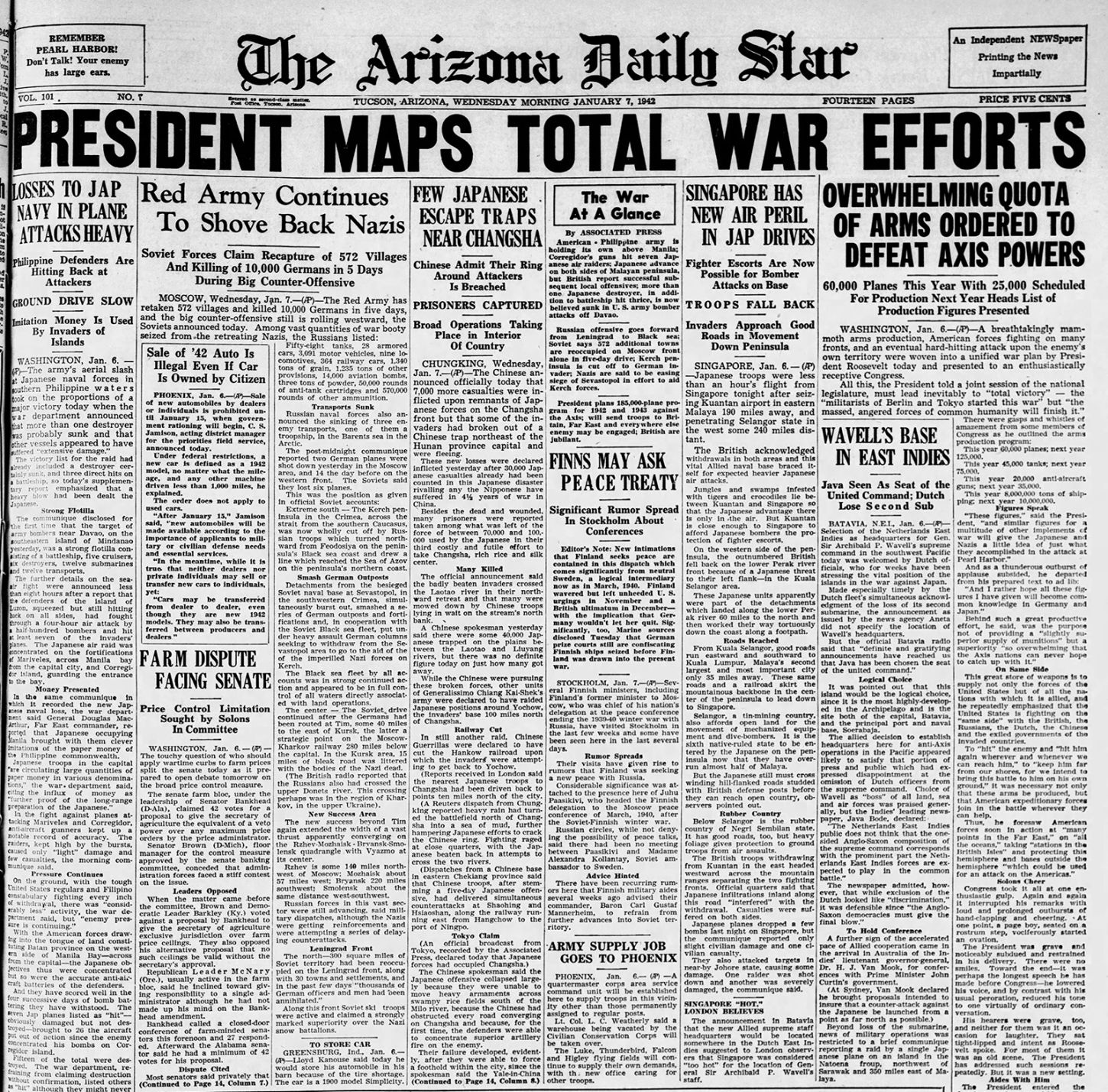 We've collected a few front pages from newspapers.com to give you a look at some Jan. 7 papers in history. With a subscription to newspapers.com you can search the Arizona Daily Star and many other newspapers using keywords or dates, and download articles or pages.