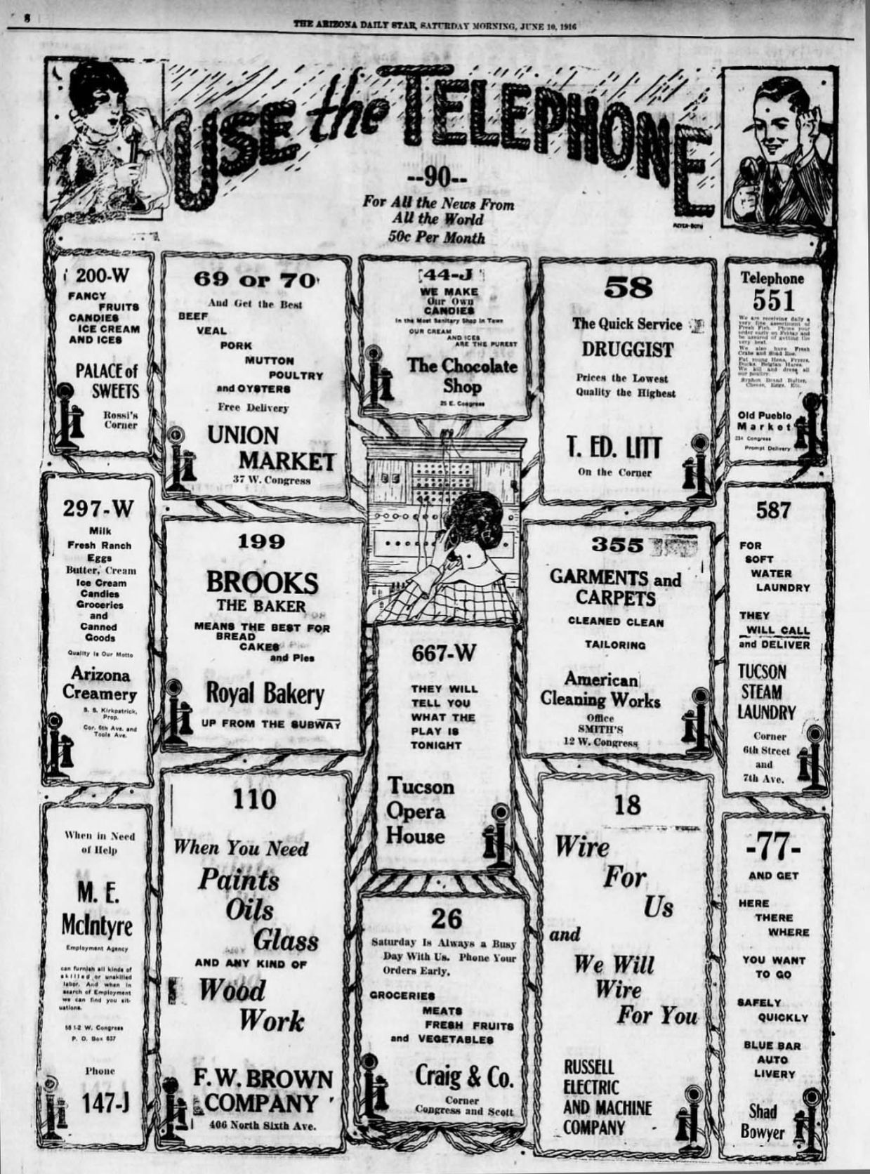In that same edition of the Star, a full page was devoted to the ways the telephone can make life easier for Tucsonans.