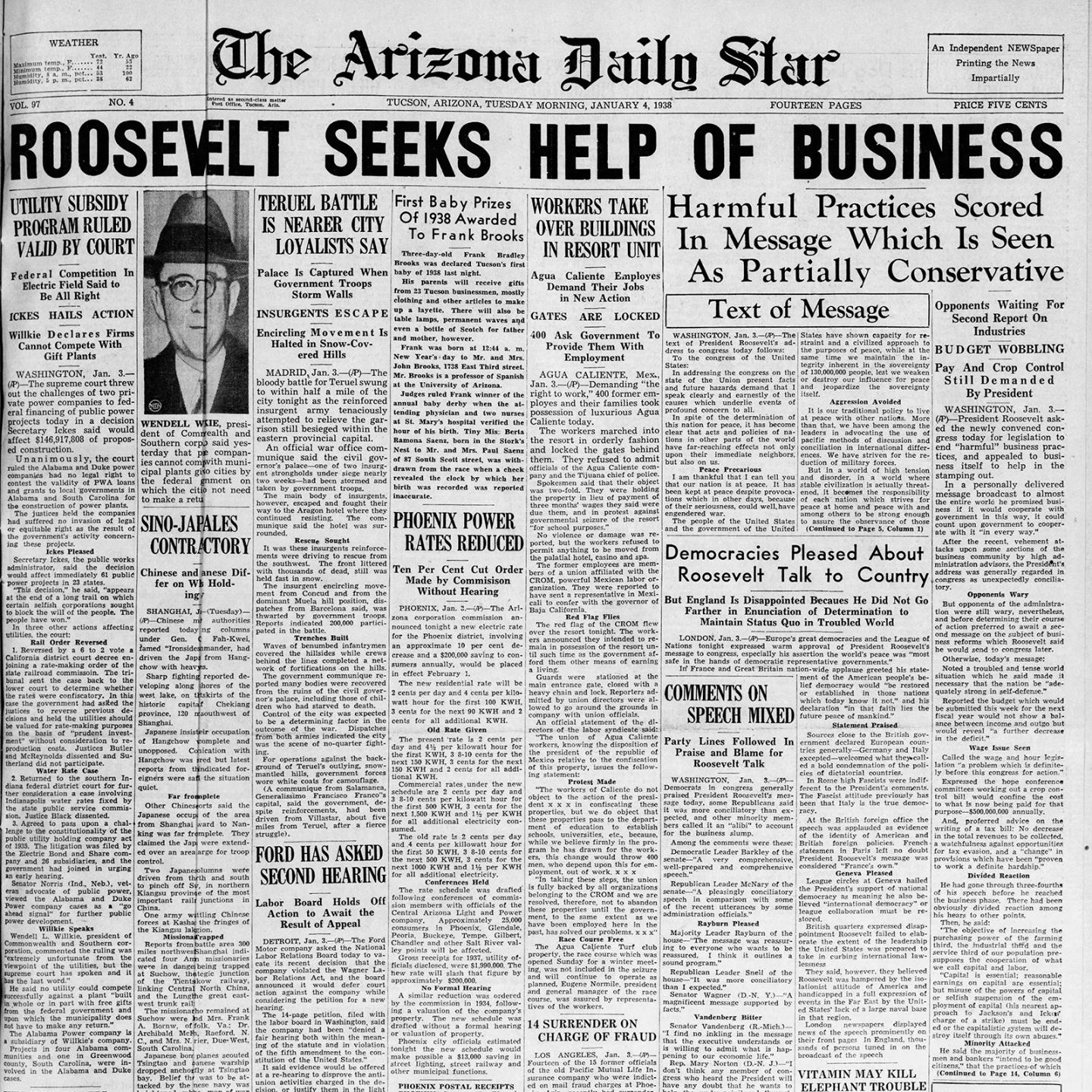 We've collected a few front pages from newspapers.com to give you a look at some Jan. 4 papers in history. With a subscription to newspapers.com you can search the Arizona Daily Star and many other newspapers using keywords or dates, and download articles or pages.